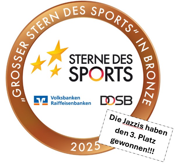 Die Jazzis freuen sich sehr, mitteilen zu können, dass sie beim diesjährigen Wettbewerb "Sterne des Sports in Bronze" mit ihrem Projekt "ALLE TANZEN - Generationen im Rhythmus" den dritten Platz und damit ein Preisgeld in Höhe von 500 Euro gewonnen haben!