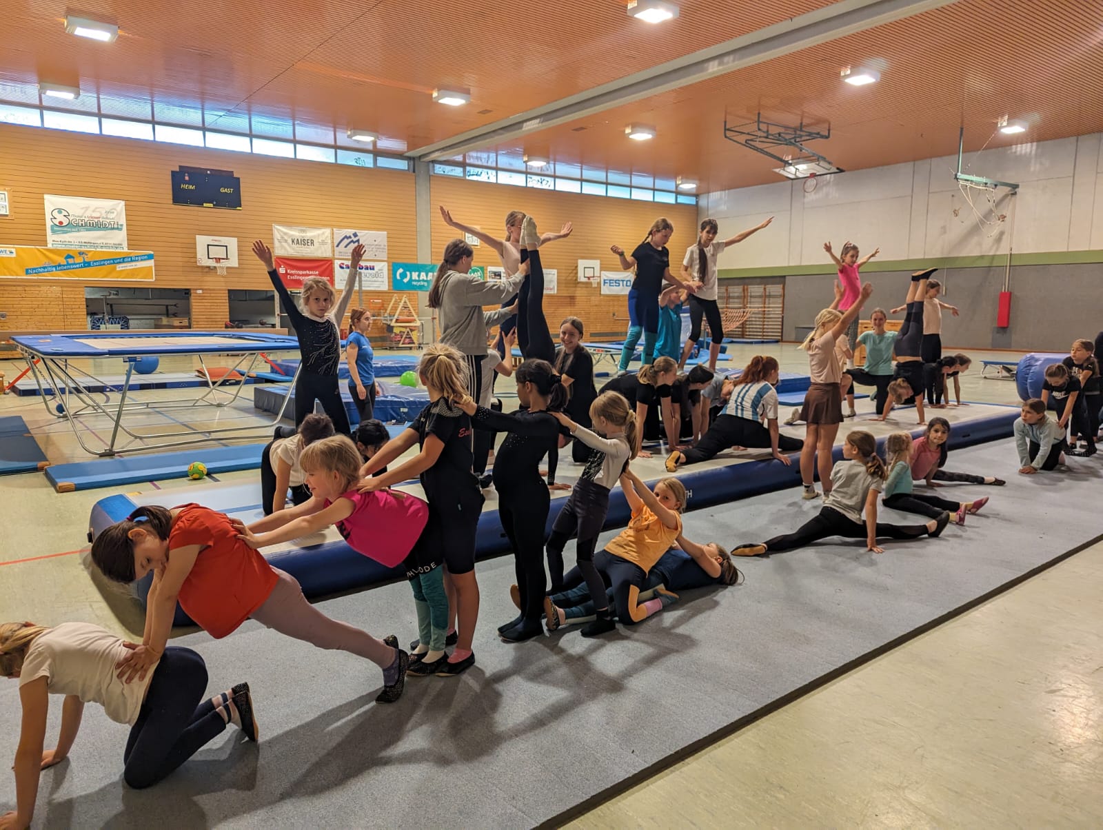 Im Geräteturnen üben wir vielfältige turnerische Elemente und trainieren an unterschiedlichen Sportgeräten, wobei der Spaß immer im Vordergrund steht. Von Bodenturnen, über Trampolin und Reck bis zum Stufenbarren oder Schwebebalken - hier ist für jeden etwas dabei! Zu Beginn unseres Trainings gibt es immer ein abwechslungsreiches und spielerisches Aufwärmprogramm, bei dem vor allem Fertigkeiten wie Ausdauer, Kraft und Beweglichkeit gefördert werden. Im Hauptteil der Stunde wird natürlich geturnt, wobei jedes Kind nach seinem individuellen Können gefördert wird. Dabei unterstützen wir uns alle gegenseitig und in unserer Gruppe steht das soziale Miteinander stets an erster Stelle. Jede Woche steht ein anderes Turngerät im Mittelpunkt, sodass es nie langweilig wird. Nach dem gemeinsamen Abbau gibt es ein Abschlussspiel, bevor wir uns verabschieden.
