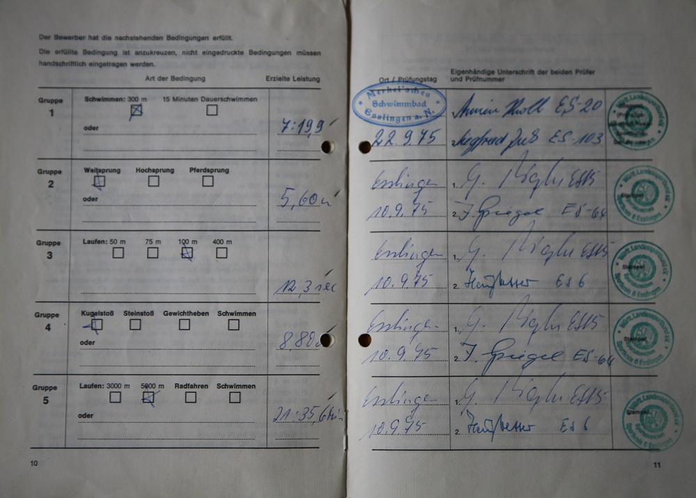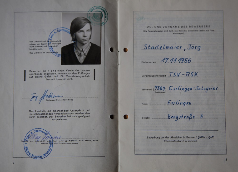 Über das Training in der Leichtathletikabteilung. Mein erster Trainer Max Lowin hat die Sportabzeichenprüfung angeboten und ich habe als Jugendlicher ab 1973 gerne daran teilgenommen.