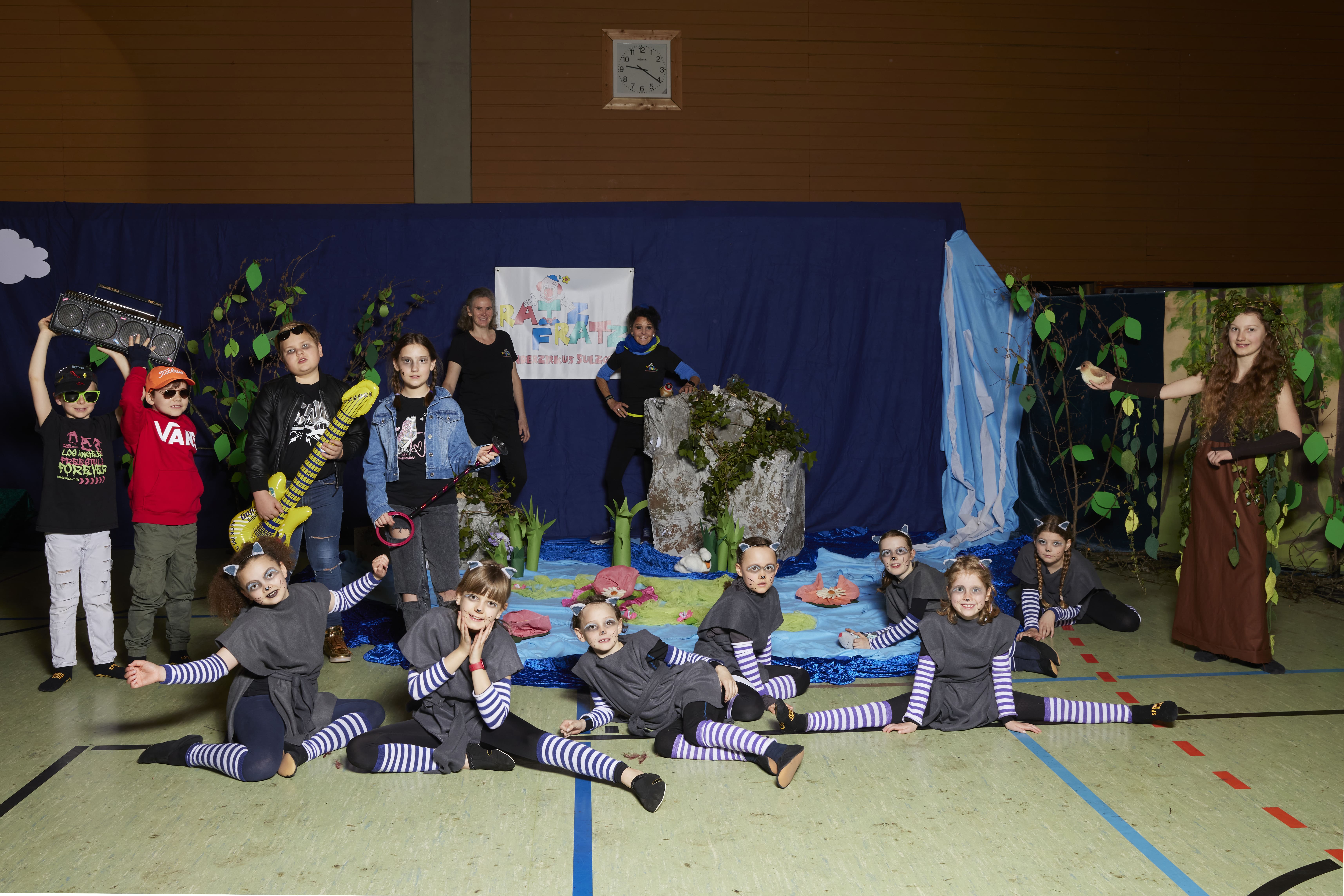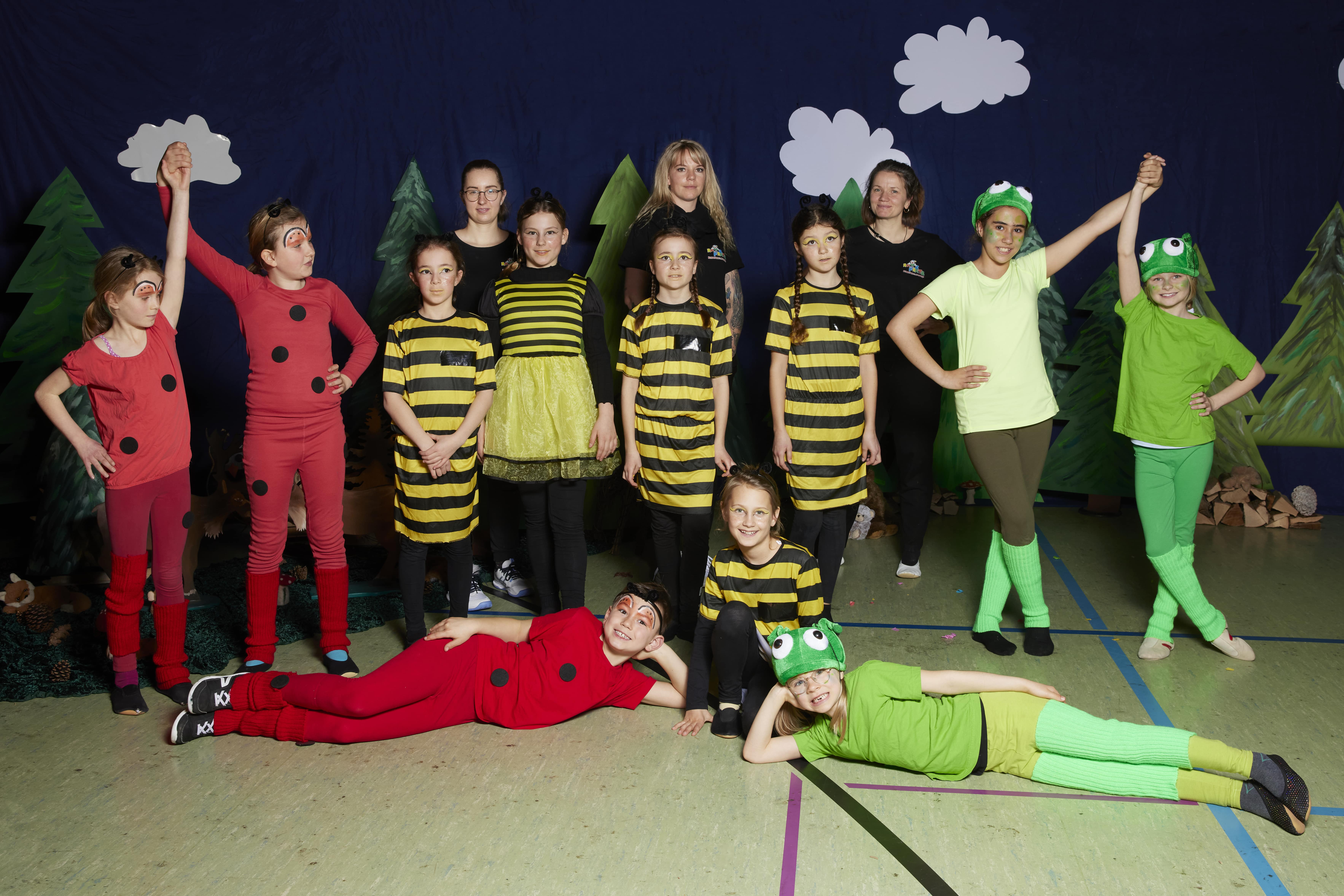 Am 30. März 2023 zeigte der Kinderzirkus Ratz Fratz in der Turnhalle Sulzgries die Aufführung WUNDER WALD, bei der es diesmal um Naturschutz und Nachhaltigkeit ging. Am Vormittag waren die Grundschul- und Vorschulkinder eingeladen, am Nachmittag war die Halle "bis unter die Zirkuskuppel" voll. Frösche hüpften turbulent auf zwei Trampolinen, um danach auf wackeligen Leitern das Wetter "vorauszuquaken“. Putzige Waschbären balancierten gekonnt auf dem Hochseil und machten danach den auf Pedalos in den Wald eingedrungenen Krawallmachern den Garaus. Auf den Laufkugeln zeigten magische Pilze ihr Können nach fetziger Musik. Ins Vertikaltuch wickelten sich grüne Raupen ein, um nach der Metamorphose als wunderschöne Schmetterlinge das Licht der Manege zu erblicken. Am Trapez zeigten niedliche Eichhörnchen in schwindelnder Höhe akrobatisch ihre Kunststücke synchron an zwei Trapezen und an der neuen Disziplin Trapezwürfen. Bienchen summten auf ihren Einrädern durch die Luft und zeigten danach beim Rope Skipping mit Marienkäfern und Grashüpfern anspruchsvolle Sprungkombinationen. Nach poppig angesagten Rhythmen war eine Horde Jazzis mit Rücksicht auf die Natur im Wald unterwegs. Das Publikum zollte dem Können der Waldartist*innen tosenden Applaus. Durch das Programm führten mit viel Herzblut die Ansagepfadis in typischer Pfadfinderkluft. Die Hälfte der Spende kam den CVJM Pfadis und dem NaBu ESSLINGEN zugute. In altbewährter Weise sorgte der Förderverein der Grundschule Sulzgries für das leibliche Wohl. Die Kooperation zwischen der Grundschule Sulzgries und dem Sportverein TSV RSK ermöglichte diese gelungene Veranstaltung. Nach langer CORONA Pause gibt es endlich wieder eine Vorstellung im benachbarten Katharinenstift, wo den betagten Bewohner:innen "circensische Waldluft" um die Nase weht. Das gesamte Zirkusteam um Zirkusdirektorinnen Susanne Haug und Verena Berndt ist währenddessen bereits in Vorbereitung auf die nächste Zirkussaison.