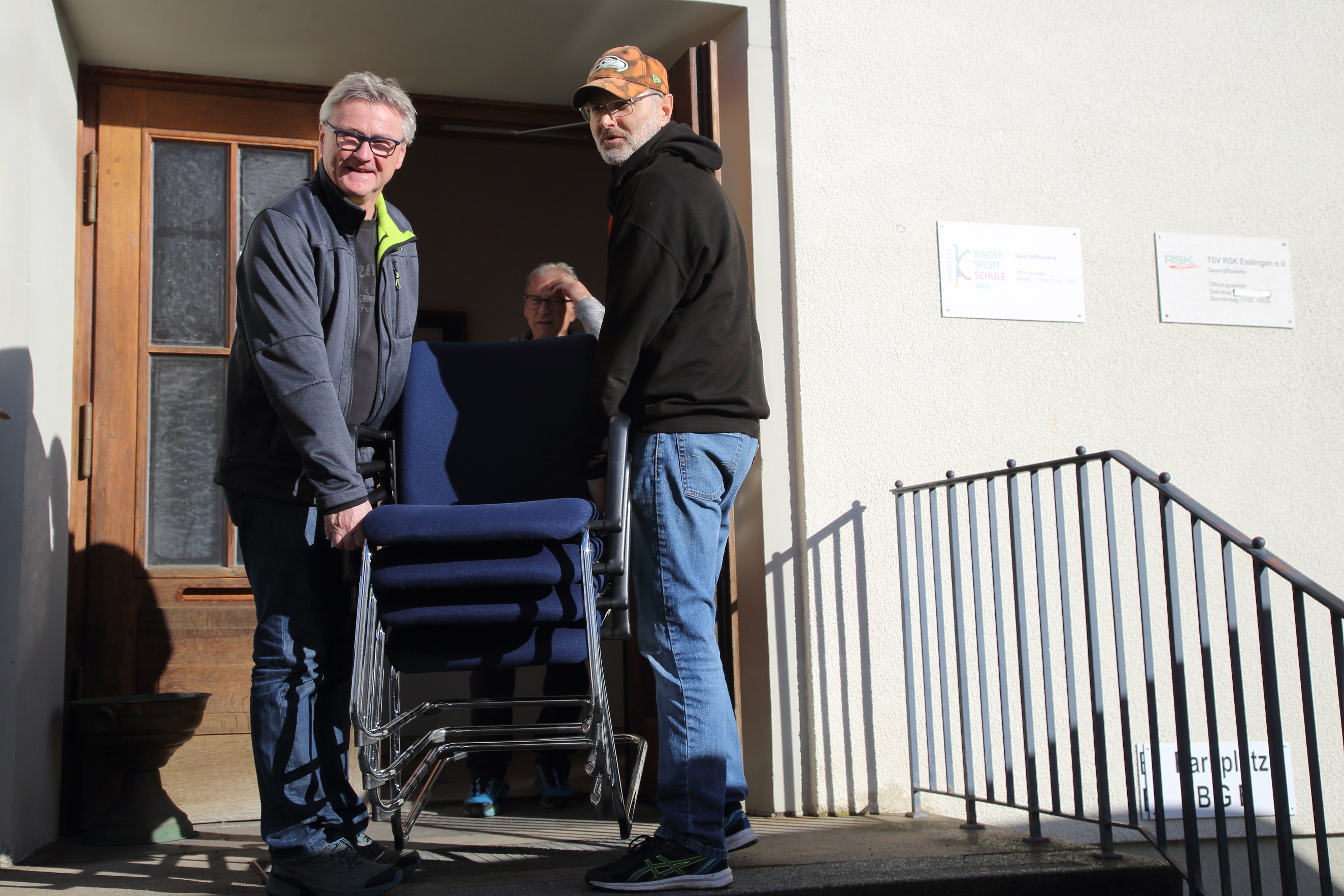 Der Schachraum in der ehemaligen Kelterschule, in der auch die Vereinsgeschäftsstelle untergebracht ist, wird immer häufiger als Besprechungs- und Versammlungsraum genutzt. Besonders die Skiabteilung macht hier gerne ihre Skifreizeit Vor- und Nachtreffen. Die in die Jahre gekommenen und zerschlissenen Stühle waren aber schon seit einiger Zeit ein großer Mangel. Jetzt ist das Skiteam das Thema angegangen und hat in kurzer Zeit für den Austausch der Stühle gesorgt. Dabei haben vier Mitglieder mal auf andere Weise Stuhlgymnastik gemacht.