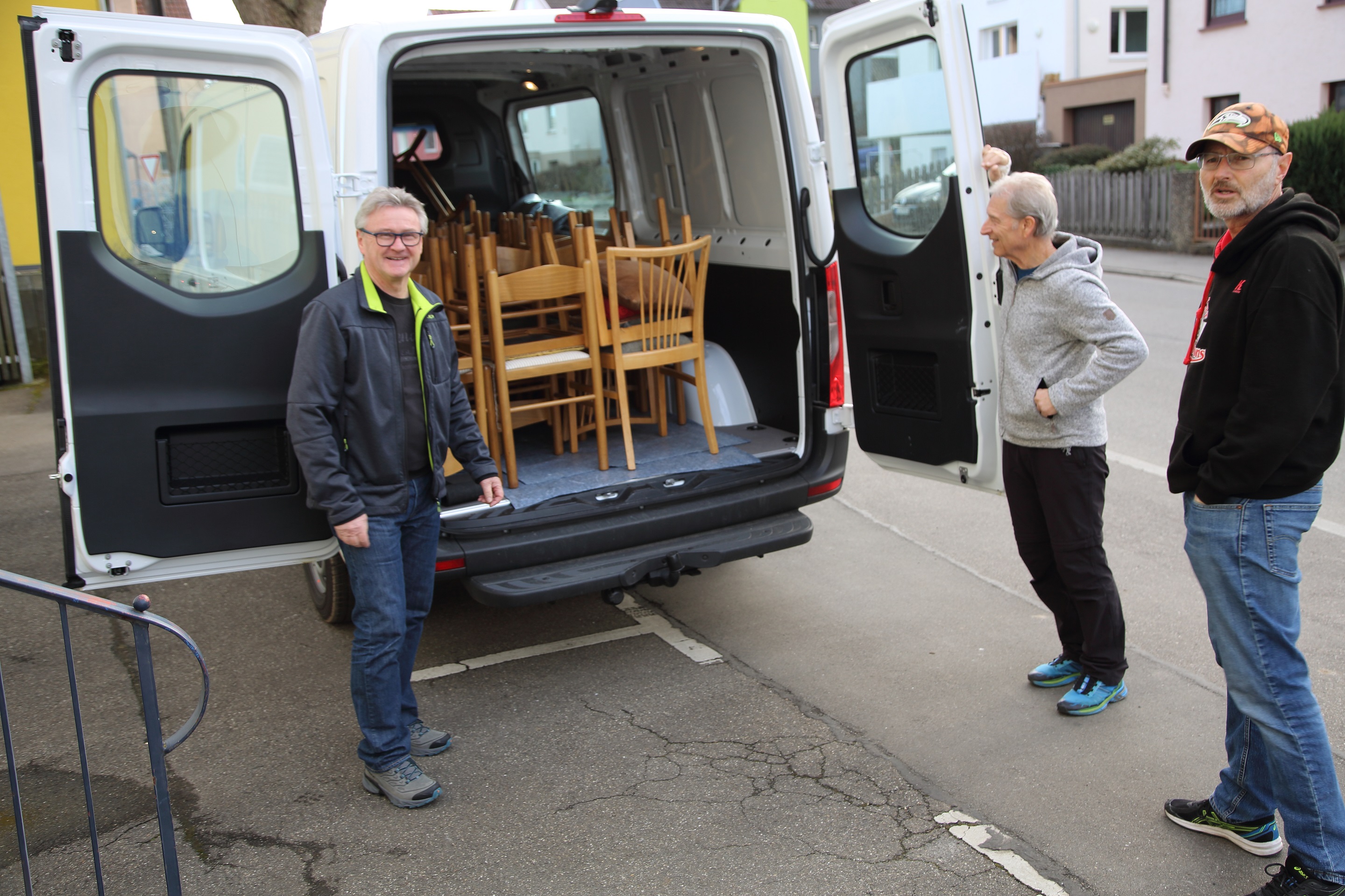 Beim beladen des von Norbert zur Verfügung gestellten Sprinters waren die strategischen Fähigkeiten eines Schachspielers gefragt. Schließlich sollten alle alten Stühle auf einmal weggefahren werden.